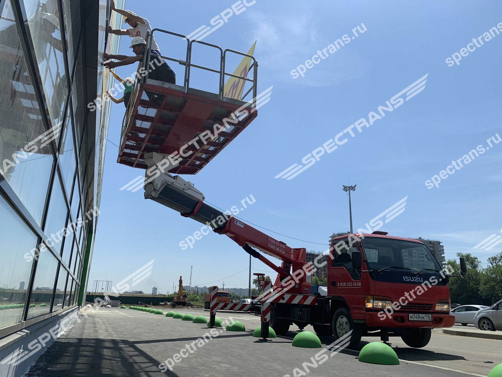 Автовышка позволяет выполнять работы на высоте до 17 метров. Эта установка - очень маневренный механизм, с грузоподъемностью корзины до 800 кг. Преимущество подъёмника в том, что он имеет платформу (корзину, люльку) больших размеров 2 х 4 метра. Автовышка-платформа используется для поднятия тяжелых грузов на крыши зданий, для мойки и очистки фасадов и работ с линиями электропередач, для монтажа громоздких и тяжёлых рекламных конструкций (баннеры, растяжки, щиты) и установки промышленных сплит-систем.